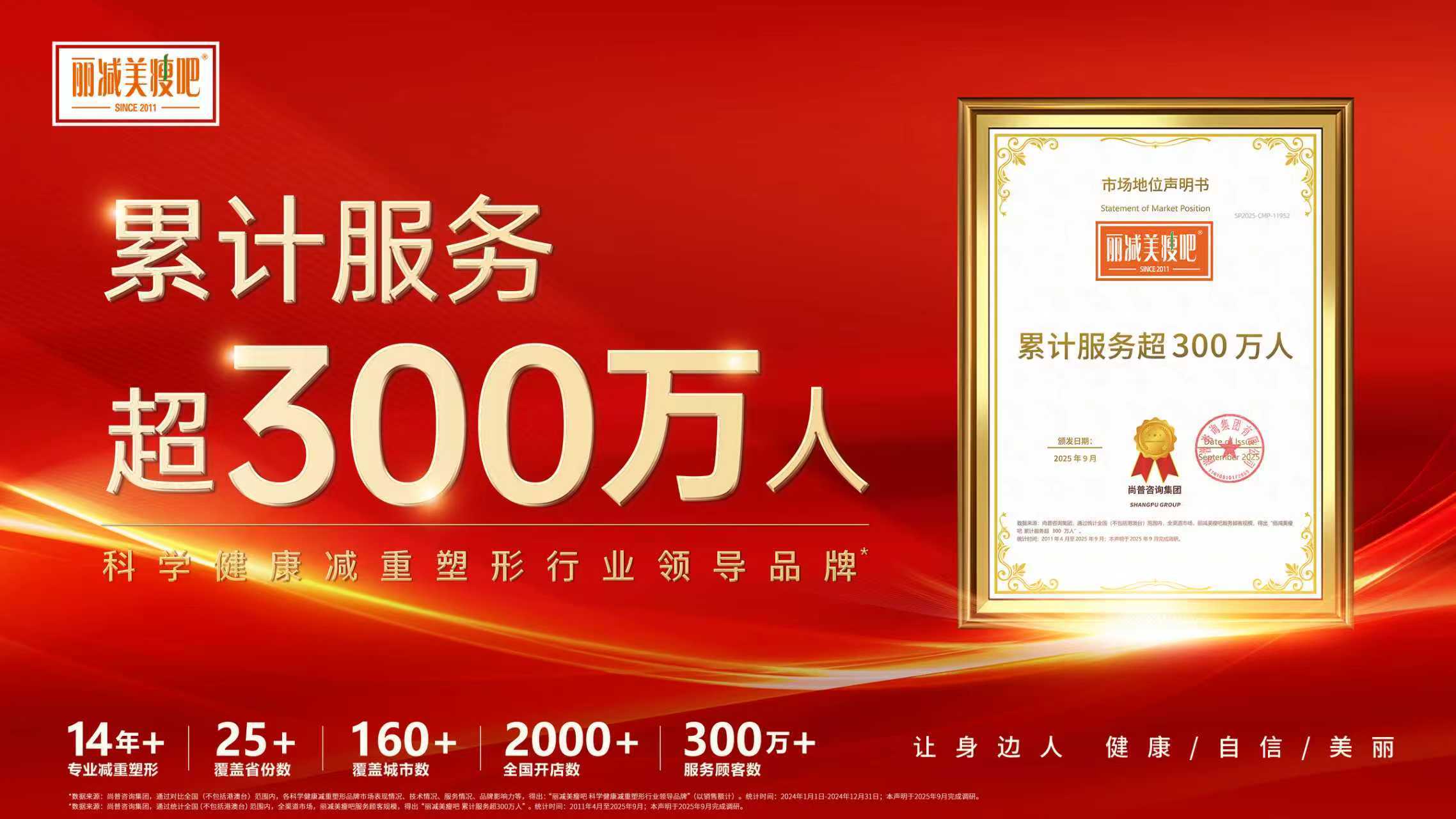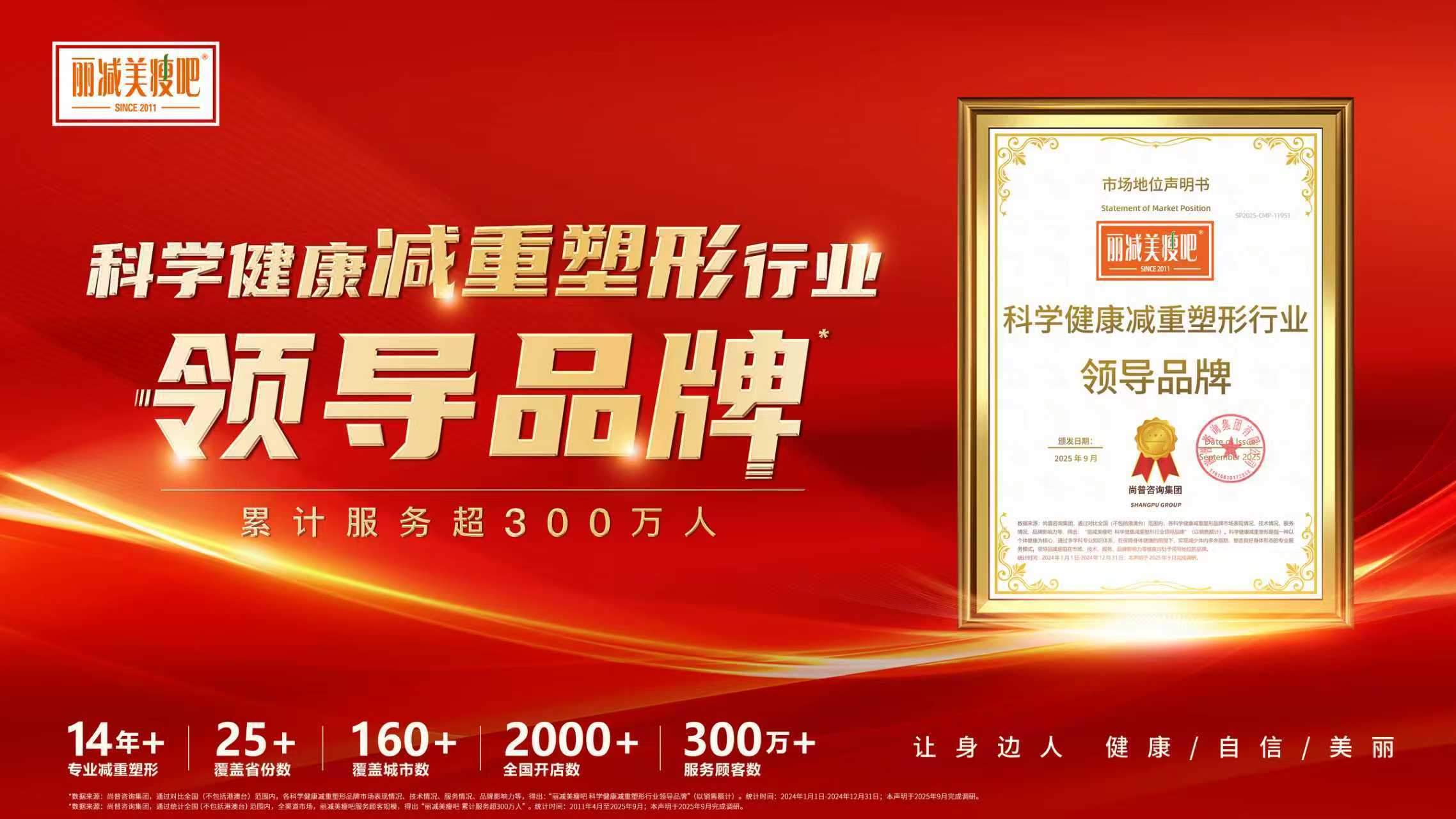近日,国内权威咨询机构尚普咨询完成对减重塑形行业头部品牌丽减美瘦吧的专项系统性研究。经多维度调研与数据验证,尚普咨询正式授予丽减美 “科学健康减重塑形行业领导品牌” 认证,并核定其累计服务顾客规模突破 300 万人。两项权威认可的落地,标志着丽减美在科学减重领域的标杆地位得到专业机构背书,也为行业发展提供清晰参照。